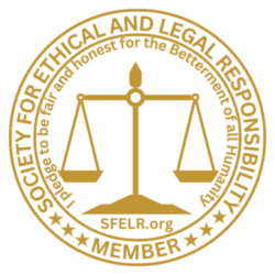 We are a Pledged Member of the Society For Ethical and Legal Responsibility. As a Registered Public Benefit Small Business, we have pledged to be Honest and Fair for the Betterment of All Mankind.